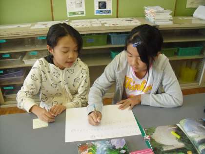 流れる水のはたらき 公開日 2014/10/16 更新日 2014/10/16 5年生の部屋 理科の学習で,グループで仮説を立てて,自分の思いや考えを発表する準備をしました。 それぞれに,知っていること,わかったこと,疑問に思ったことをもちより,班で発表するための話し合いをしました。 お互いの意見をしっかり聞き,またその意見に対して自分の考えをしっかり言えていました。 たくさん,意見を言う経験をしていってほしいですね。
