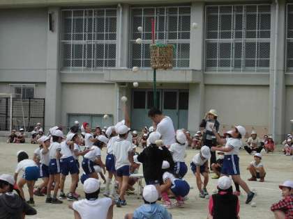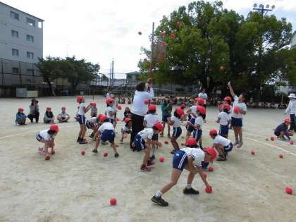 くすのきの子ども達は自分の出場するフレサ種目を覚えており,玉入れの列に並ぶこと