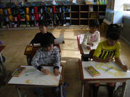 虫をつかまえたよ 公開日 2014/10/17 更新日 2014/10/17 1年生の部屋 17日(金)の図工で, 虫探しに行った時のことを思い出しながら 絵を描きました。 虫の位置を決めたら,そこから 手を描いて, どんどん自分の体を描いていきます。 まだまだ途中ですが, いろいろなポーズで虫を捕まえているので 出来上がるのが楽しみです。