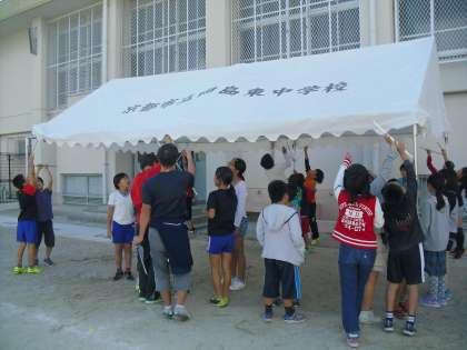 準備はばっちり! 公開日 2014/10/17 更新日 2014/10/17 5年生の部屋 明日の運動会に向けて,5・6年生で準備をしました。 テントを張ったり,机を運んだり,椅子を用意したり,放送の練習もばっちりです! いよいよ明日です。 晴れますように・・・★