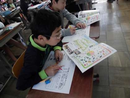 堀井先生による,食の学習がありました。給食を三つの食品群(赤・緑・黄)に分けて働きを学習しました。食品がどのような働きをしているのか理解し,自分の体にどのような力になっているのか知りました。