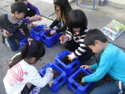 10日(月)に,チューリップの球根を植えました。
