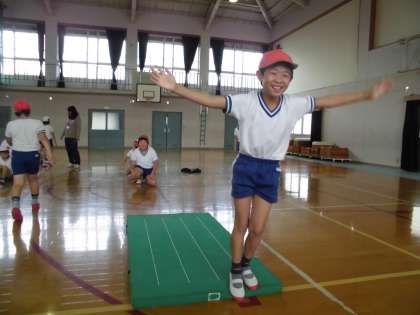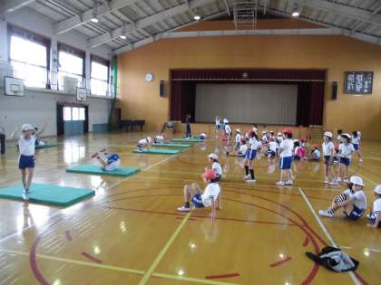 今日の体育は1組・2組合同でマット運動をしました。前半は前転・後転を練習し,後半は前転・後転の連続技に挑戦しました。全員が目的を持って練習することができました。そして何よりも,準備や片付けを全員で協力してできるところが素晴らしかったです。