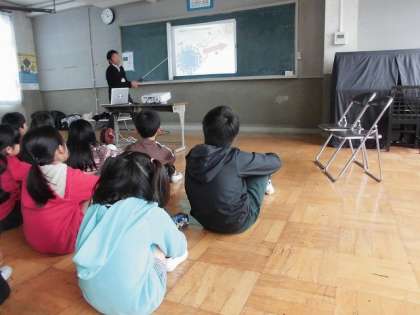 社会科の学習で気候ネットワークの方に講師に来ていただき,