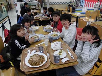 巨匠展の帰りに昼食を六地蔵のイズミヤで食べました。子ども達はどれを注文するかメニューを見ながらそれぞれまよっていましたが,きめると店員さんに自分で注文することができました。