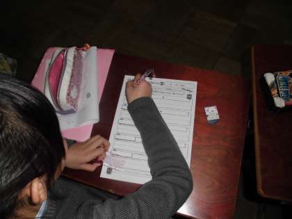 今日はパワーポイントを使って先端産業が京都で盛んに行われていること、そして「モノづくりの殿堂」で京都の先端産業についての何を調べるのか考えさせました。調べる内容を大きく「もの」「ひと」「歴史」のグループに分け、調べるブースの使い方や調べたものを記入するワークシートの使い方を説明しました。