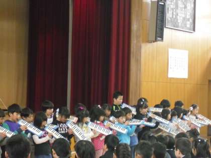 けんばんハーモニカは、「きらきら星」を三部合奏で演奏したり、歌もとてもきれいな歌声で歌ったりしました。