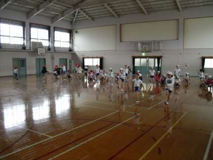 「50m走のタイムは上がるかな?」とドキドキしながらむかえた4年生初めての体育でしたが、外はあいにくの雨模様。外の体育はあきらめて体育館で体育をしました。4年生全員で体を伸ばしてストレッチをしたり体ほぐしの運動を行い、みんな笑顔いっぱいでした。「言うこと同じ」ゲームでは全員で頭を使いながら大きな声で活動しました。そして最後には全員で「増え鬼」!!みんな思う存分走り回り、最後の集合では汗びっしょりに!外は雨でしたが、それを感じさせない4年生の活動でした!!