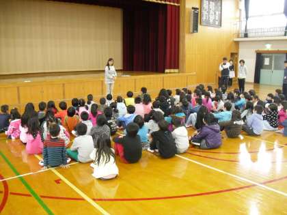 今日は中学年集会がありました。3年生の時とは違い、今年は中学年の代表になります。みんなそれを意識できていたのか、最後まできちんとした態度で話を聞くことができました。「さすが4年生!」とほめられ、子どもたちはにっこり笑顔。6月には宿泊学習もあるので、このままのかっこいい4年生でがんばるぞー!!