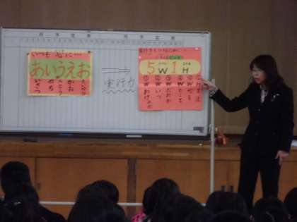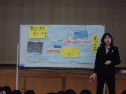その任務をさらに「知っている,分かっている」だけでなく,どのように実行していくのか。実行するためにどのように考えていくのか5W1Hの話を交え,考え方を伝えていきました。本校の学校教育目標「未来に向かってたくましく生きぬく力をつける」,たくましく生きぬいていくためには,自分の頭で考えて行動することが重要です。校長先生の話を通して考えることの大切さ,なにを考えるのかという考え方が分かったのではないかと思います。考える力を鍛え,実行する力を育てていきたいと考えています。