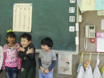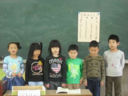 音読発表会をしよう 公開日 2015/04/21 更新日 2015/04/21 2年生の部屋 21日(火)に,音読発表会をしました。 昨日の学習では,それぞれの役を決め, その役になりきるために どんな工夫をしながら読むのかを考えました。 今日は,少し動きを取り入れながら 発表することにしました。 どの班も,声の大きさを変えたり 動きを取り入れたりと とてもかわいい『ふきのとう』の 音読発表をすることができました。