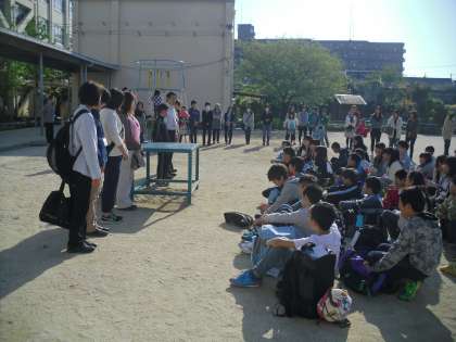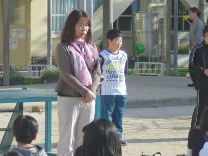 出発式では,司会の児童の「松岡校長先生のおかげで晴れました」のアナウンスに思わず笑いと拍手が起きていました。「最低10個の発見」のミッションをもって出かけます。おみやげ話が楽しみですね。