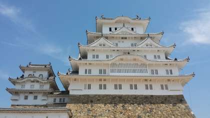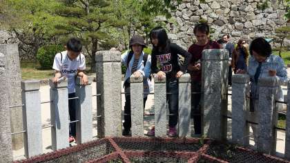 姫路城は,さすがに美しいです。青空の中の白鷺城!みんなその姿に見とれていました。お菊さんの井戸も見ました!