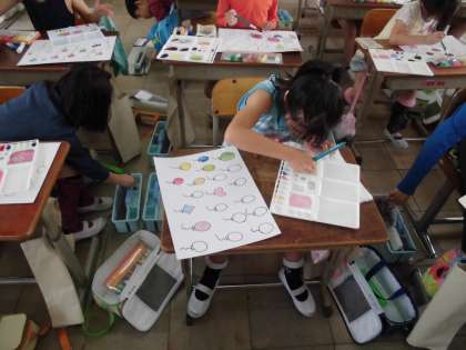 自分だけの風船 公開日 2015/04/24 更新日 2015/04/24 3年生の部屋 図工の時間に絵の具の使い方を勉強しました。赤・青・黄でいろんな色を作って,風船を自分の好きな色で塗りました。3原色で様々な表情の風船にぬれることが驚きだったようです。これからの作品にどんどん生かしていってください。