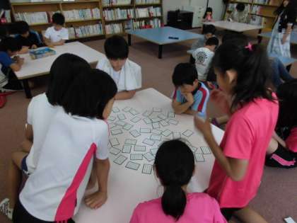 今日も読書だけでなく,百人一首,日本地図パズル,ブロック,折り紙など知的な遊びを楽しんでいました。知的空間になった向島小学校の図書室で,世代を超えた交流がありました。