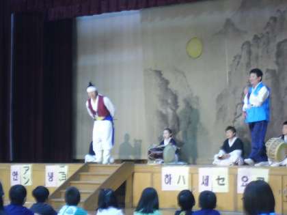 鑑賞教室 公開日 2015/05/08 更新日 2015/05/08 4年生の部屋 今日の3、4時間目に韓国について知るための鑑賞教室が行われました。子どもたちも異文化に触れることがとっても新鮮で、目を光らせて鑑賞していました。帰るときには教えていただいた「さようなら」の意味を持つ「アンニョー」という言葉を使ってくる子どもたちも!すごく楽しい鑑賞教室になったみたいです。