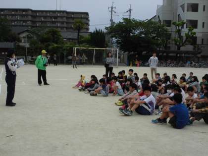 校長先生が,「休みの日一番心配していることは,宇治川へ行くこと(そんなことは,無いとみんなを信じてる!)。自転車で危ない乗り方をして交通事故に遭ってへんやろか。」だとおっしゃっていました。静かに聞いている子どもたち。