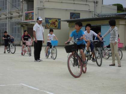 伏見警察署,向島学区交通安全推進委員会,PTA,保護者の方々のご協力を得て5月のふれあい活動「自転車の正しく安全な乗り方を学ぶ」を開催しました。