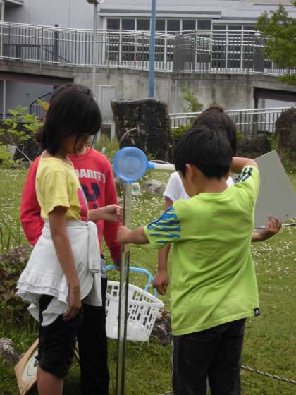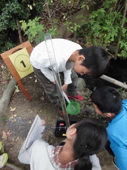 1組では水の探検で水の透明度や汚れを調べる活動をしました。科学センター内にある小さな川でグループごとに水を調べる活動を行い、多くの子どもたちが目を輝かせていました。