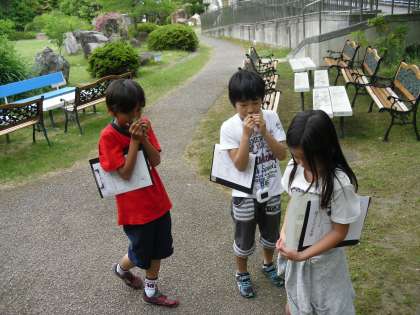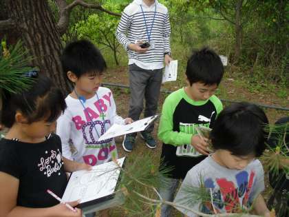 科学センター学習3 公開日 2015/05/13 更新日 2015/05/13 4年生の部屋 2組では樹木の探検ということで、科学センター内にある小さな森で樹木調べをしました。名前の知らない木もたくさんありましたが、2組もグループで行動し楽しく活動しました。