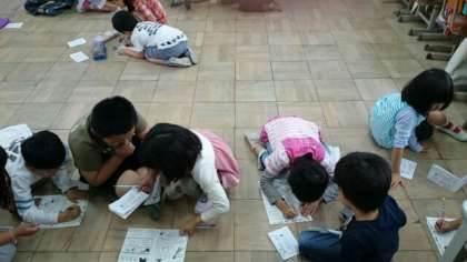 遠足の準備をしよう 公開日 2015/05/13 更新日 2015/05/13 2年生の部屋 13日(水)の遠足に向けて 学年でオリエンテーリングをしました。 降りる駅の確認や,園内での行動の仕方など 初めに説明を聞きました。 そのあと,グループに分かれて 仲良しラリーの用紙にいろいろ記入しました。 1年生と一緒の仲良しラリー・・・ 楽しみだね!