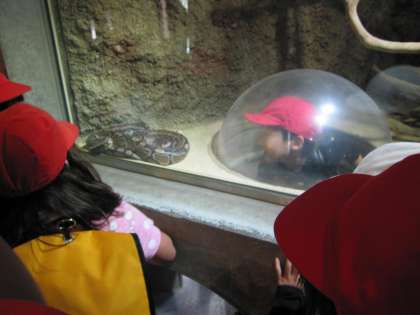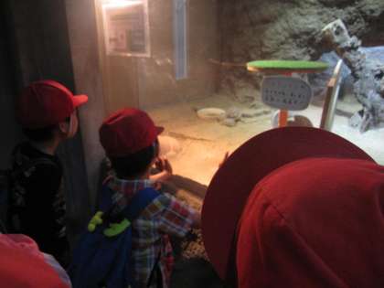 熱帯動物館では蛇に近づいたり蛇の抜け殻やめずらしい色のかえる、大きなかめなどを食い入るように見ていました。