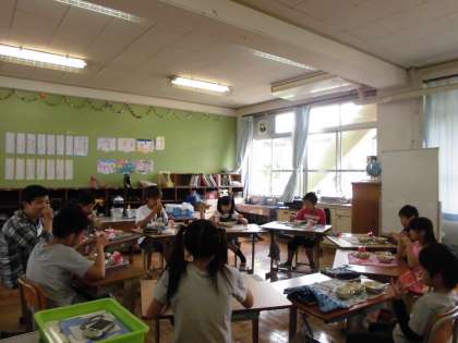 14日に初めて交流給食をしました。初めは6年1組の子ども4人がくすのき学級に来てくれました。自己紹介をしてから自由に話す時間がありました。緊張してあまり話をすることはできなかったものの、後で「楽しかった。」と言う子どもたちばかりで、満足しているようでした。