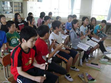 今日の音楽は,リコーダーの音をきれいに出すことを教えていただきました。
