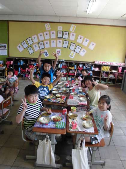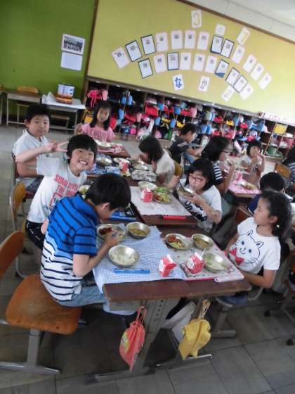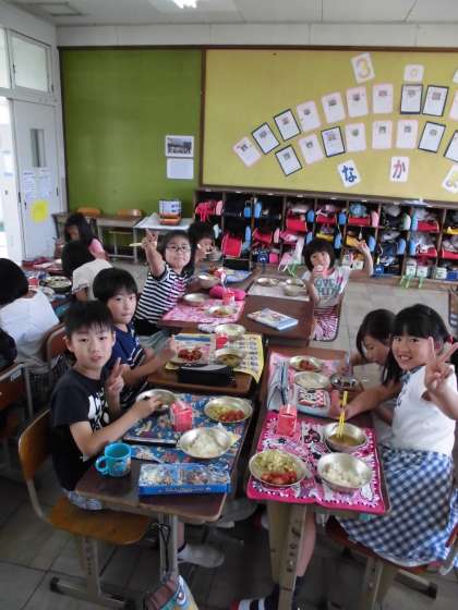 今日の給食は,チキンカツでした。きっと1年生を迎える会を頑張ったご褒美でしょう。みんな笑顔でおいしくいただくことができました。