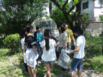 そして,今週は,美化週間ということもあり,向島小学校にある石碑の回りをきれいにしていくことを始めます。