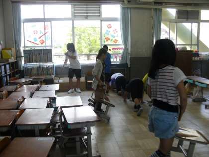 6年生は,教室以外にも,廊下や1年生の教室を担当しています。