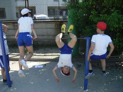 今日の体育も鉄ぼうをしました。次の時間はテストということで,みんな必死に練習していました。回る技や組み合わせ技など,より難しい技に挑戦する子どもたちの姿はとてもたくましかったです。