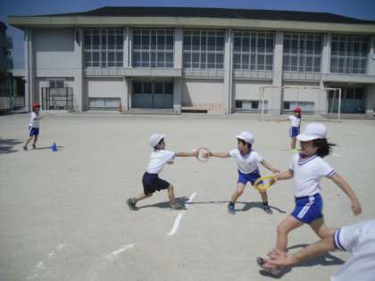 今日も体育で「リレーあそび」をしました。