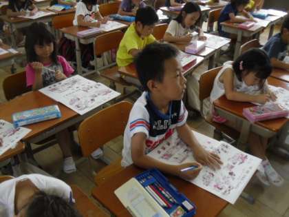 小学校に入って初めての訓練でしたが,話をしっかり聞いて,素早く避難することができました。保育園や幼稚園でのことをよく覚えていて感心しました。「お・は・し・も・て」の避難の仕方についても学習しました。お家でも,「お・は・し・も・て」がどのような意味なのか,聞いてみてください。