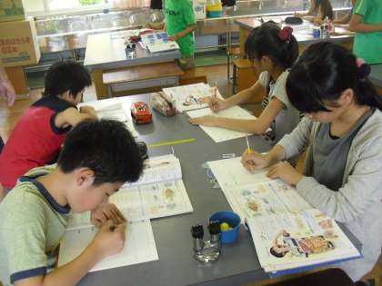 調べる学習では,実際に絵や文で記録をします。