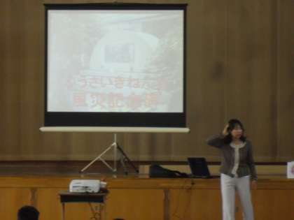 朝会では,向島小学校の歴史を校長先生がお話されました。80年前の室戸台風についてのお話を聞いて,命の大切さを感じたことと思います。