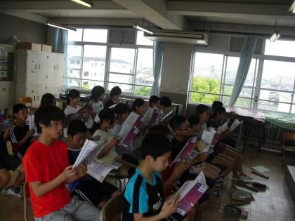 活動では.山口先生の声量に負けないように,一生懸命ついていこうと頑張る子ども達。