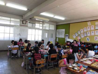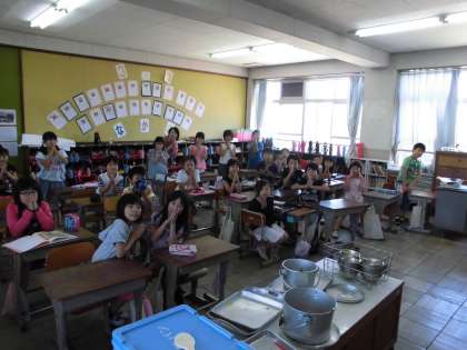 食の学習の後は,大好きな堀井先生との給食でした。ジャンケンでどこの班で食べていただくか決めました。食事中はご飯の大切さについて教えてもらいました。そのおかげで,ご飯も完食,しかも時間内に全員食べることができました。