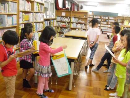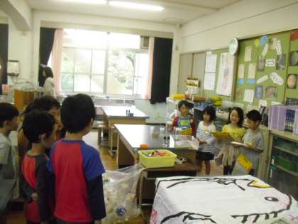 学校探検の様子です。終わったあと,2年生にお礼を言いました。感想も発表しました。「楽しかったです。」「2年生が説明してくれてうれしかったです。」などの感想がでました。