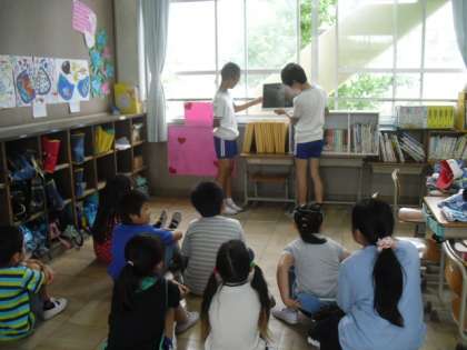 中間フレサ 公開日 2015/06/09 更新日 2015/06/09 2年生の部屋 9日(火)の中間に 中間フレサ活動がありました。 今日は6年生による読み聞かせでした。 みんなしっかりとお話を聞いていました。 6年生のお兄さん,お姉さん。 ありがとう♪