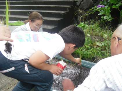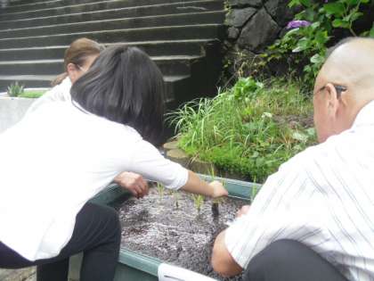 田植えをしたよ 公開日 2015/06/09 更新日 2015/06/09 2年生の部屋 9日(火)に,学校で田植えをしました。 まず,稲をひとりずつもち 植えていきました。 最初は手が汚れるのがいやそうでしたが おもいきっていってみると 気持ち良かったのか 上手に植えることができました。 そして,あまった稲は牛乳パックに入れて持ち帰りました。 しっかりと育ってくれるといいな♪ おいしいお米ができますように・・・。