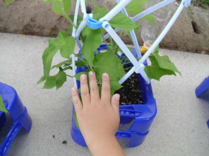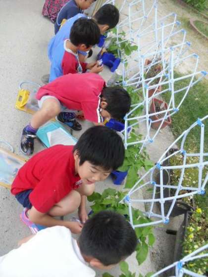 大きくなってきたアサガオのために,追肥も行いました。いつ花が咲くかとっても楽しみな子どもたちです。