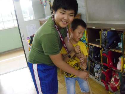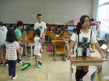 1年生と一緒に 公開日 2015/06/09 更新日 2015/06/09 6年生の部屋 今週から1年生と一緒に1年生の教室を掃除します。 6年生は,1年生に掃除の仕方を教えます。机の運び方・下ぞうきんで床をきれいにすること,黒板もきれいにするよと張り切って頑張っている1年生にやさしく教えている姿に,最高学年だなぁと感じます。 体つきも全然ちがう子ども達ですが,優しく・ていねいに! 1年生がしっかり覚えてくれるよう,サポート頑張ってくださいね!