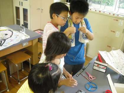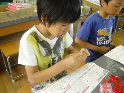 電池のはたらき 公開日 2015/06/10 更新日 2015/06/10 4年生の部屋 ユニバーサル学習(みんなで作成研究)で,実験カーを制作しました。一人でつまづきを生じても,友達のアドバイスでクリアしていきます。最初は「ワカラナイ」と言っていましたが,さながら攻略本を制覇するように完成させていきました。できた喜びはとても大きかったです。これからも試行錯誤を繰り返しながら学習を進めていきます。