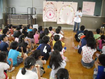今日は,歯科衛生士の方に来ていただいて歯みがき指導をしていただきました。