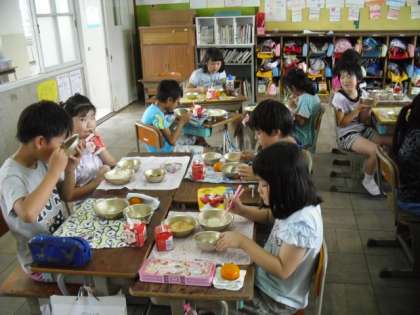 今日は給食にみかんがでました。みかんが出ると知った3年生は,みんな「早く食べたい!」「めっちゃおいしそう!」と言って喜んでいました。とっても冷たくて,あまくておいしいみかんでした。4時間目の体育でシャトルランを頑張ったご褒美になりましたね♪