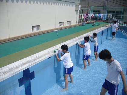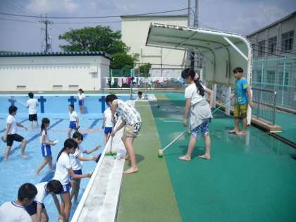 プール清掃頑張りました 公開日 2015/06/19 更新日 2015/06/19 6年生の部屋 来週から水泳学習が始まります。 今週は,プールサイドを中心に掃除を頑張りました。 暑い日だったので,水にさわるのが気持ちよかったです。 きれいになったので,来週の水泳学習が楽しみです!