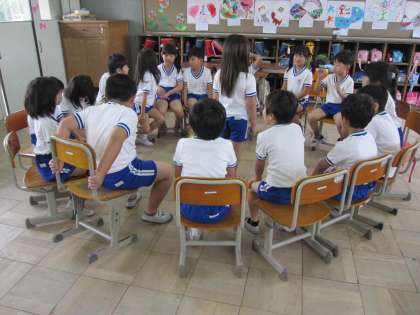 みんな体操服に着替えていたため,服の特徴を言うことはできなかったので
