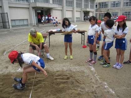 立ち幅跳びでは,ほとんどの子どもが記録を伸ばすことができていました。