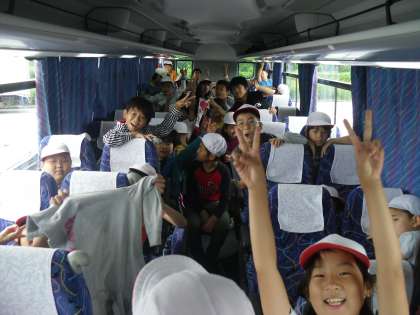 バスに乗って、一路みさきの家へ。朝早かったため、バスの中で寝てしまった人もいましたが、みんな元気です。賢島からは船に乗って、みさきの家のなかよし港へ行きました。